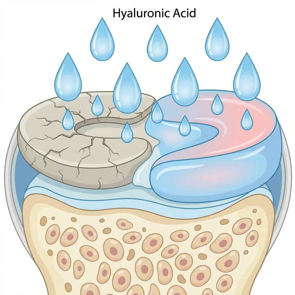 Without adequate joint fluid, cartilage absorbs more stress. HA supports shock absorption between bones, helping reduce wear and promote joint stability.