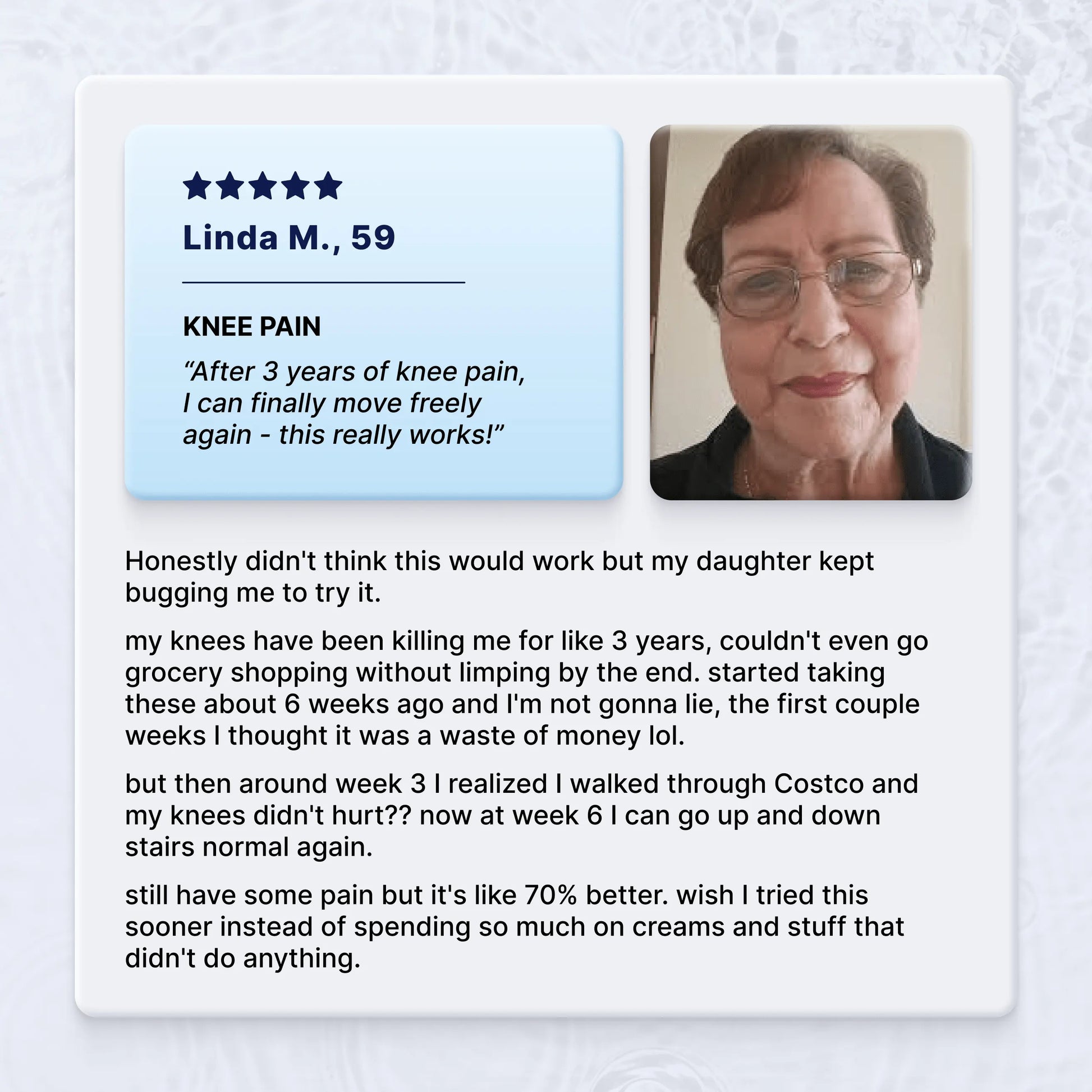 “After 50, your body’s natural hyaluronic acid production drops significantly. HA is the substance responsible for keeping your cartilage hydrated, your joints cushioned, and your movement fluid. Without it, you get the stiffness, the grinding, and the pain that makes you dread stairs and mornings.